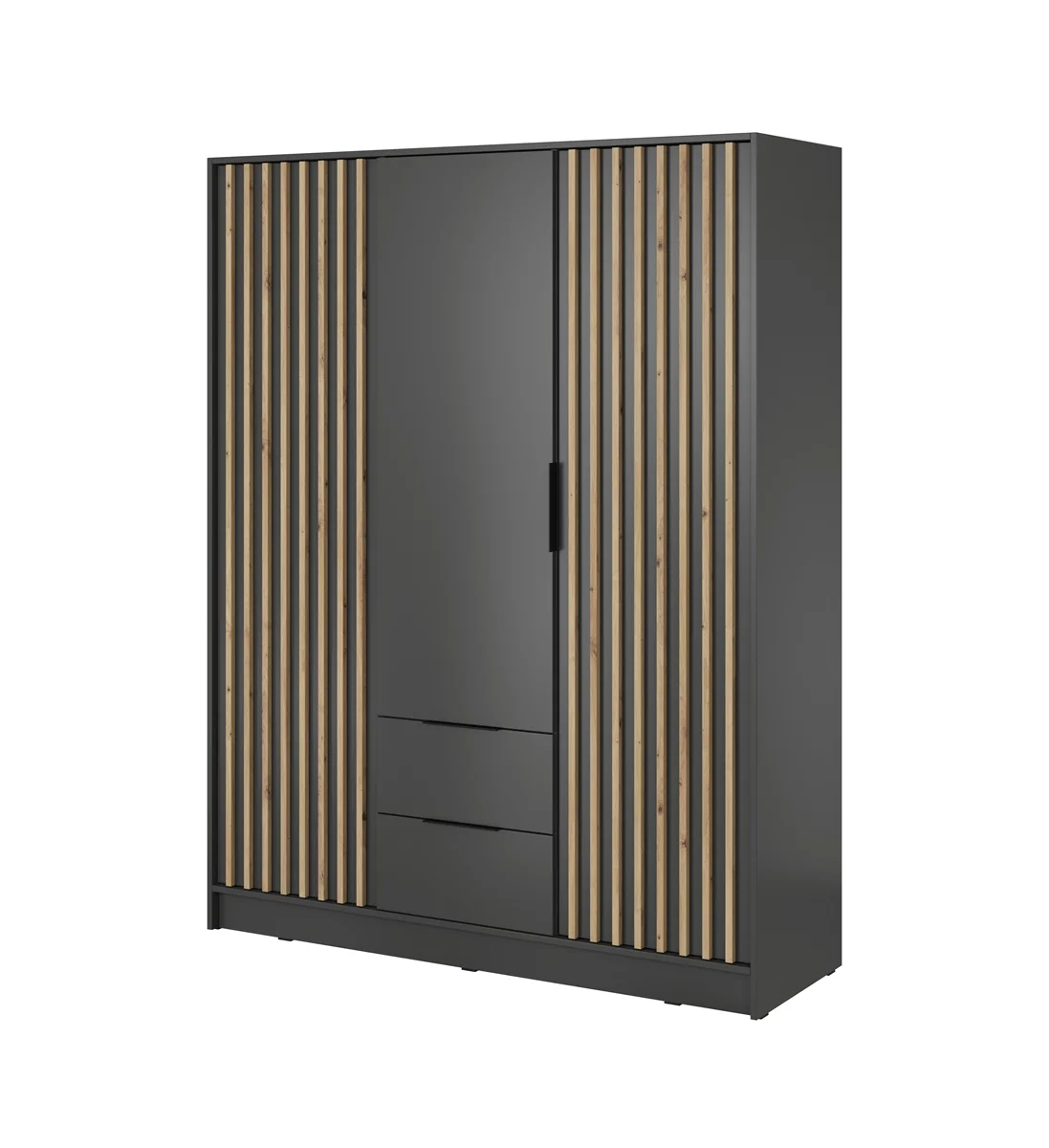 Drehtürenschrank mit Lamellen KELLY 155 cm Graphit