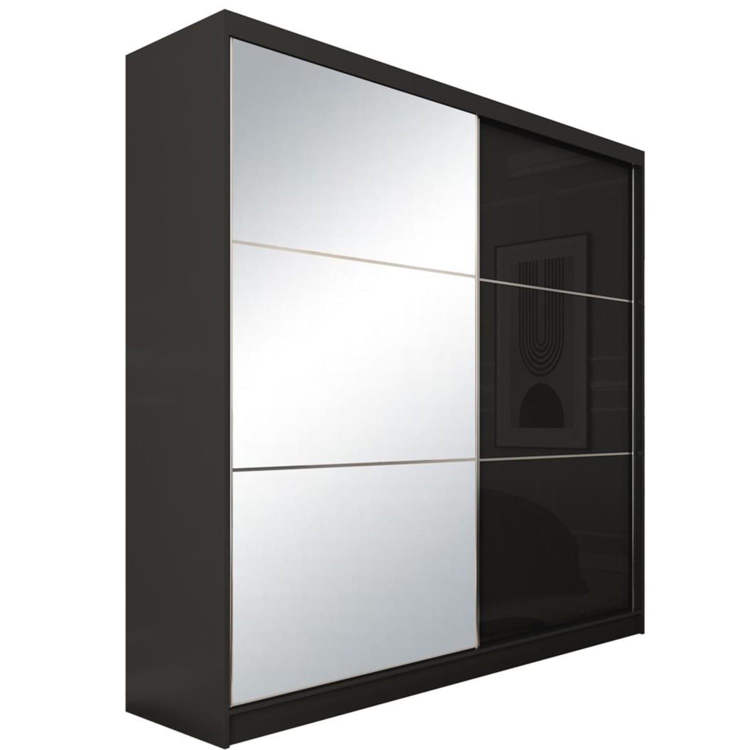 Ein geräumiger Kleiderschrank für ein Schlafzimmer mit Schiebetüren? Der Kleiderschrank Viva ist die beste Wahl! Der Schrank Viva besteht aus einer 16mm dicken Laminatplatte, je nach Ihren Bedürfnissen, kann er 120, 150 cm breit (ohne Spiegel) oder 200, 240 cm breit (mit Spiegel) sein. Es verfügt über Schiebetüren mit höchster Effizienz und Haltbarkeit. Im Kleiderschrank Viva wird ein Fahrsystem verwendet – Laguna zusammen mit Aluminiumschienen. Alle Fronten sind mit einem OMEGA 2R Aluminiumgriff + Stoßbürste abgeschlossen. Kleiderschrank Viva zur Auswahl in der Farbe: Weiß, Graphit oder Schwarz. Türfronten aus Lacobel-Glas, dessen Farbe von der Variante des Schranks abhängt.