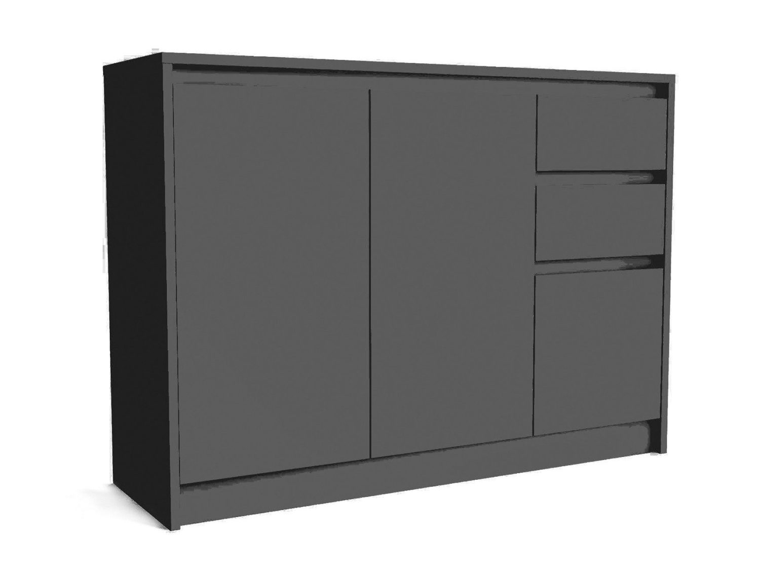Die stilvoll Holzkommode ANTHONY in 3 Türen und 2 Schubladen Konfiguration ist eine ausgezeichnete Lösung für diejenigen, die mehr Stauraum benötigen. Es ist in den Farben weiß, schwarz oder eiche Sonoma erhältlich und sein modernes Design wird sicherlich Aufmerksamkeit erregen.