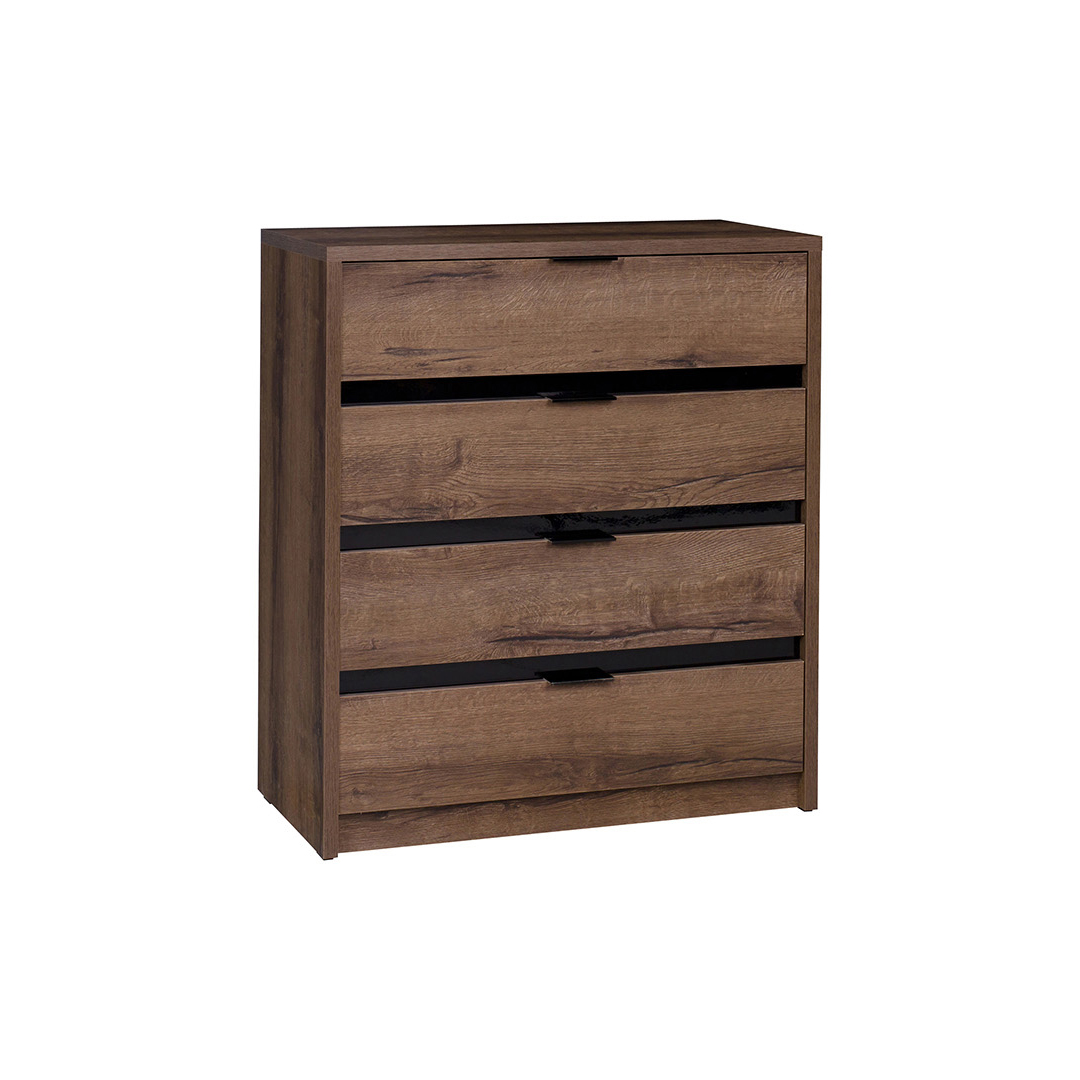 Die Kommode DEVON vereint modernes Design mit hoher Funktionalität und ist die perfekte Lösung für Wohnzimmer, Schlafzimmer oder Arbeitsbereiche. Die Kombination aus Eiche Monastery und Schwarz Hochglanz verleiht der Kommode einen eleganten, zeitgemäßen Look, während die glänzenden Einsätze stilvolle Akzente setzen. Die vier geräumigen Schubladen bieten großzügigen Stauraum für Kleidung, Accessoires oder Alltagsgegenstände. Metallgriffe sorgen für komfortables Öffnen, und ABS-Kanten schützen die Oberfläche zuverlässig vor Beschädigungen, sodass die Kommode langlebig bleibt.