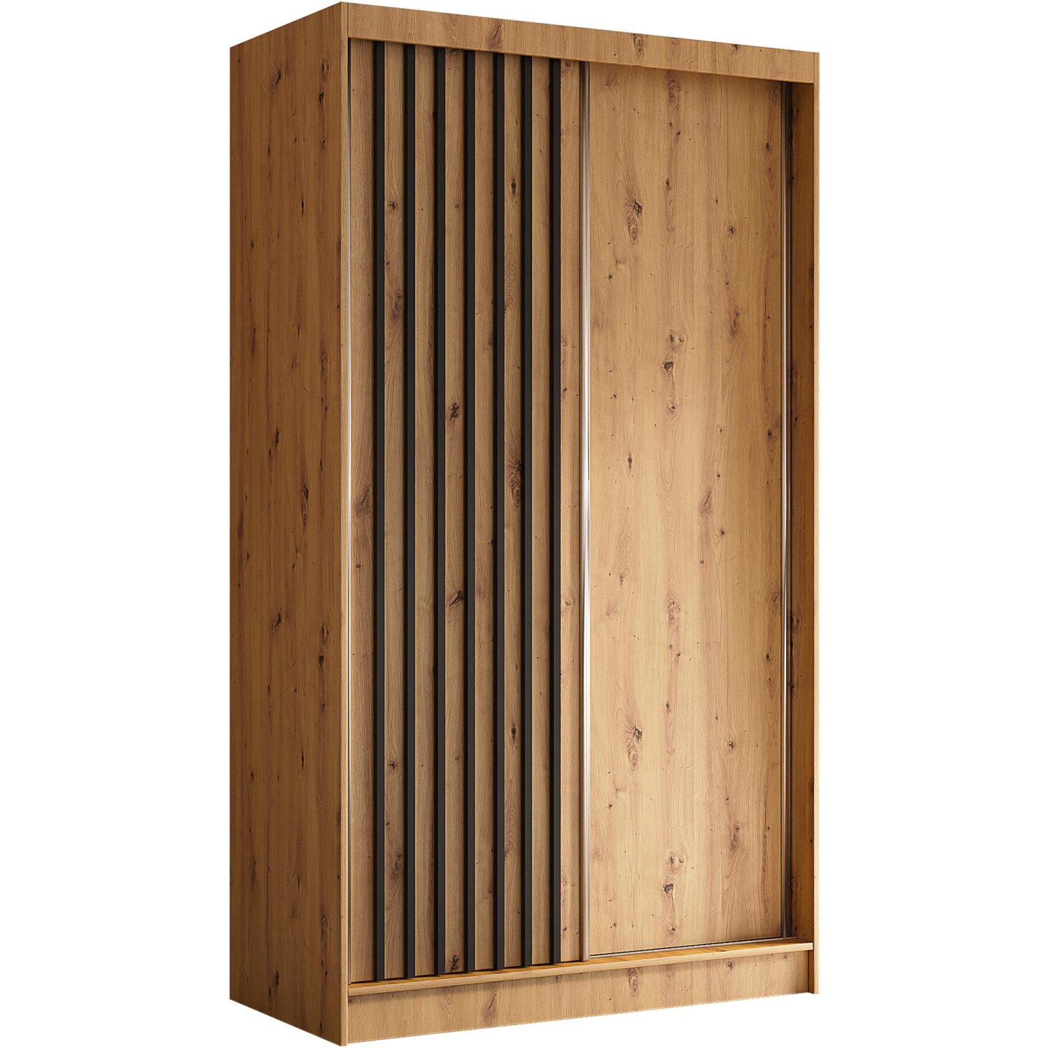 Der geräumige Schiebetürenschrank HELIOS II ohne Spiegel kombiniert modernes Design mit hoher Funktionalität und passt perfekt in jedes Schlafzimmer. Aus einer robusten 16 mm starken laminierten Platte gefertigt, überzeugt dieser Schrank mit Langlebigkeit und einer schlichten Eleganz, die jedem Raum ein stilvolles Ambiente verleiht.