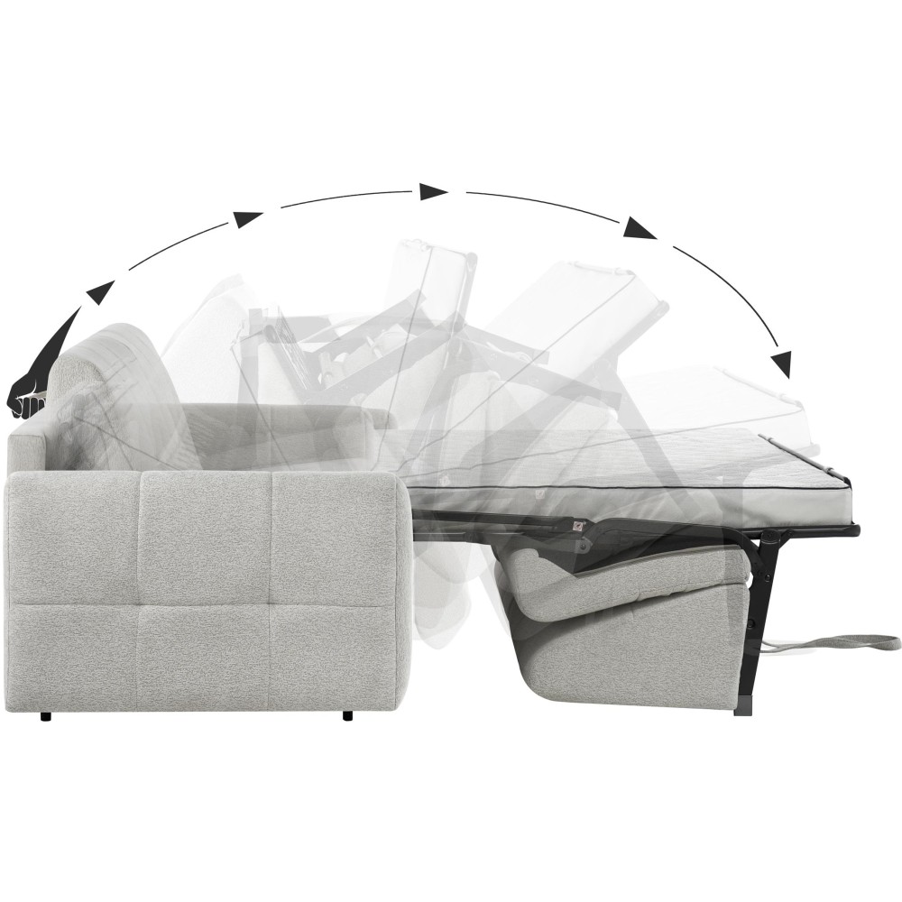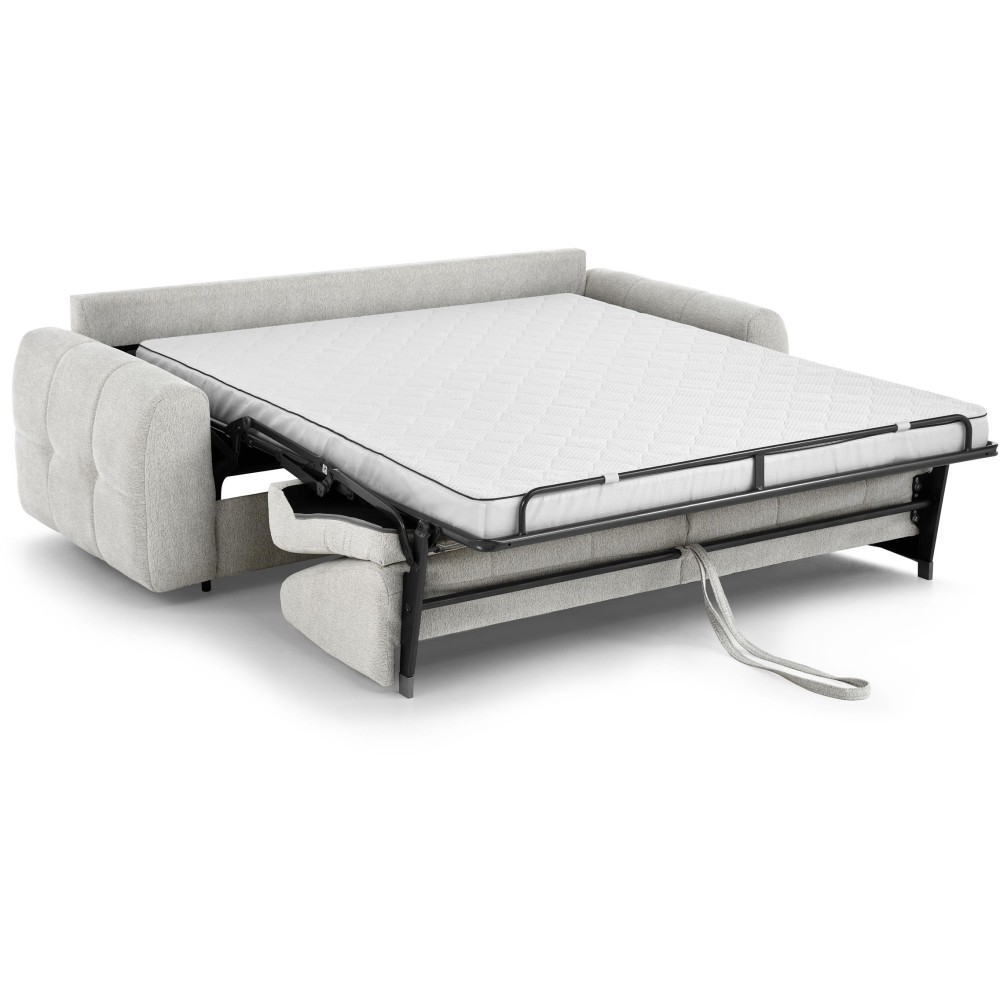 - Italienisches Ausklappsystem – Komfort und Zuverlässigkeit – Der auf einem italienischen Automatismus basierende Mechanismus ermöglicht es, das Sofa mit einer einzigen fließenden Bewegung mühelos und ohne Entfernen der Kissen auszuklappen.