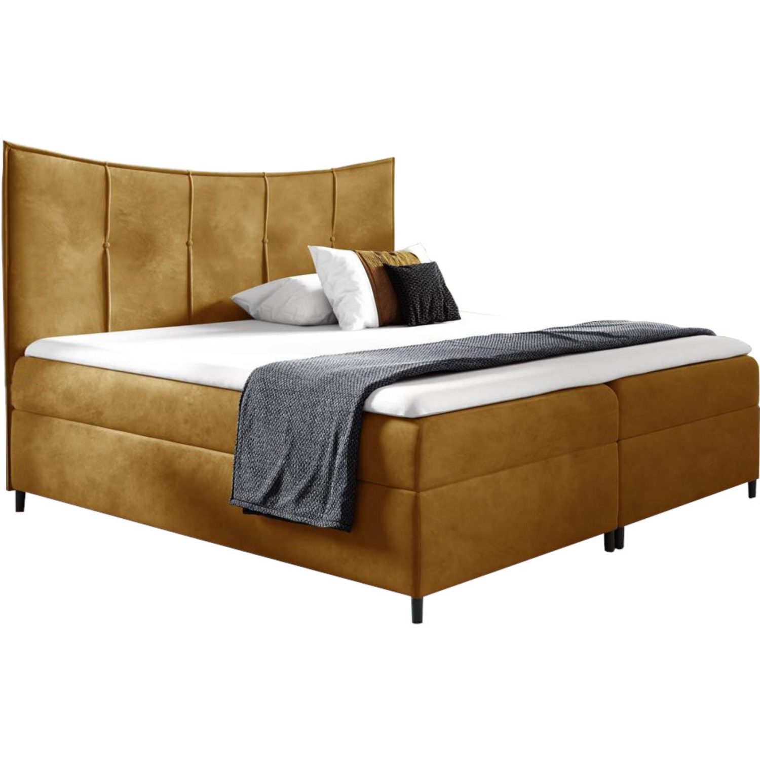 Das Bett Bergo wurde für Liebhaber des klassischen Stils geschaffen. Er zeichnet sich durch die edle Linie der Kopfstütze aus, die mit minimalistischen geometrischen Mustern gesteppt ist. Die originelle, ergonomisch geformte Kopfstütze sorgt für Entspannung auch im Sitzen, während die geraden Linien und der massive Rahmen den Eindruck von Solidität verstärken. Das Polsterbett Bergo passt perfekt in ein modernes Schlafzimmer, kann aber dank seiner schlichten Form auch in einem klassischen Stil eingesetzt werden. Das Modell Bergo ist eine Garantie für hochwertige Materialien, komfortablen Schlaf und zeitlose Eleganz.