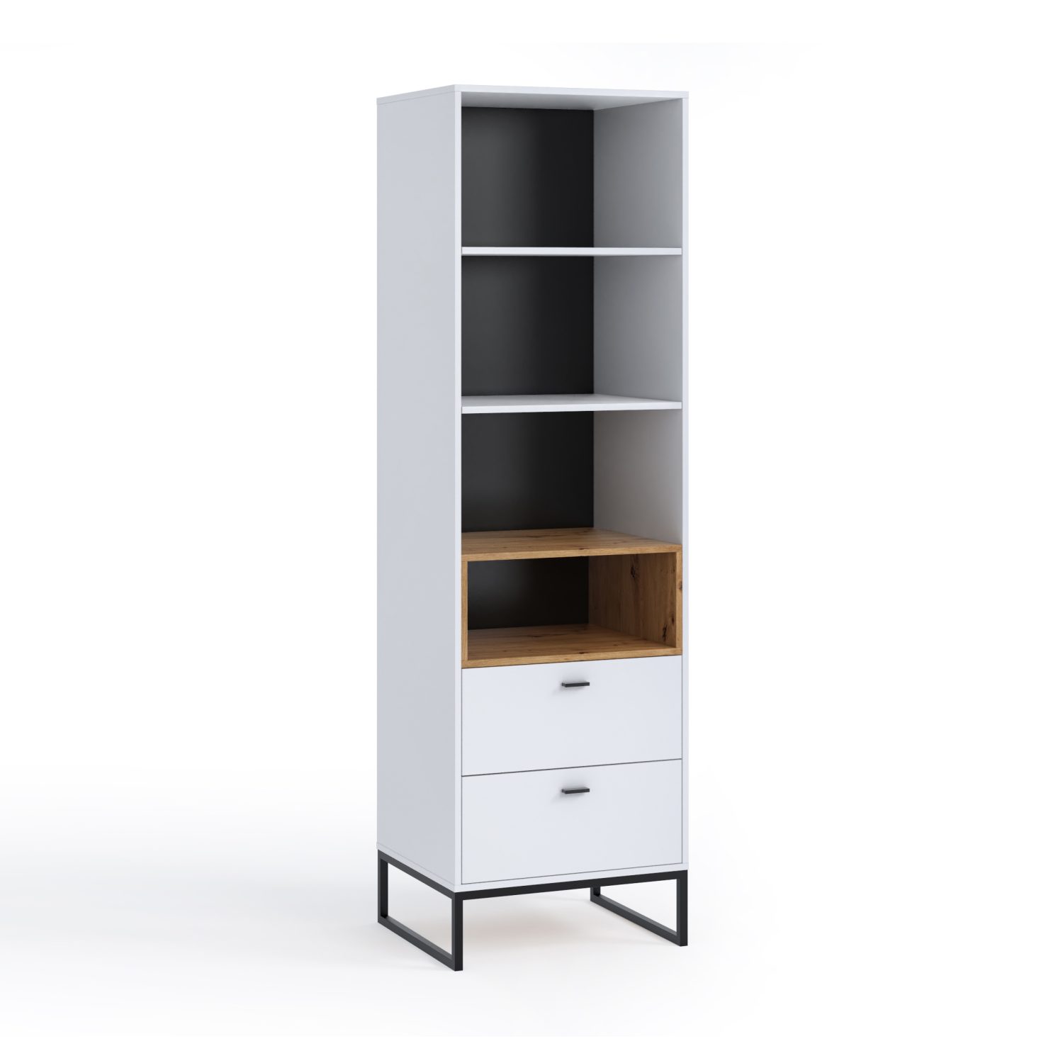 Das Bücherregal OMAN kombiniert klare Linien, moderne Materialien und praktische Aufbewahrungsmöglichkeiten – perfekt für jedes stilvolle Zuhause. Mit seiner eleganten Optik in Weiß oder Eiche Artisan und dem robusten Metallgestell bringt es zeitgemäße Leichtigkeit und industrielle Eleganz in Ihren Wohnraum.