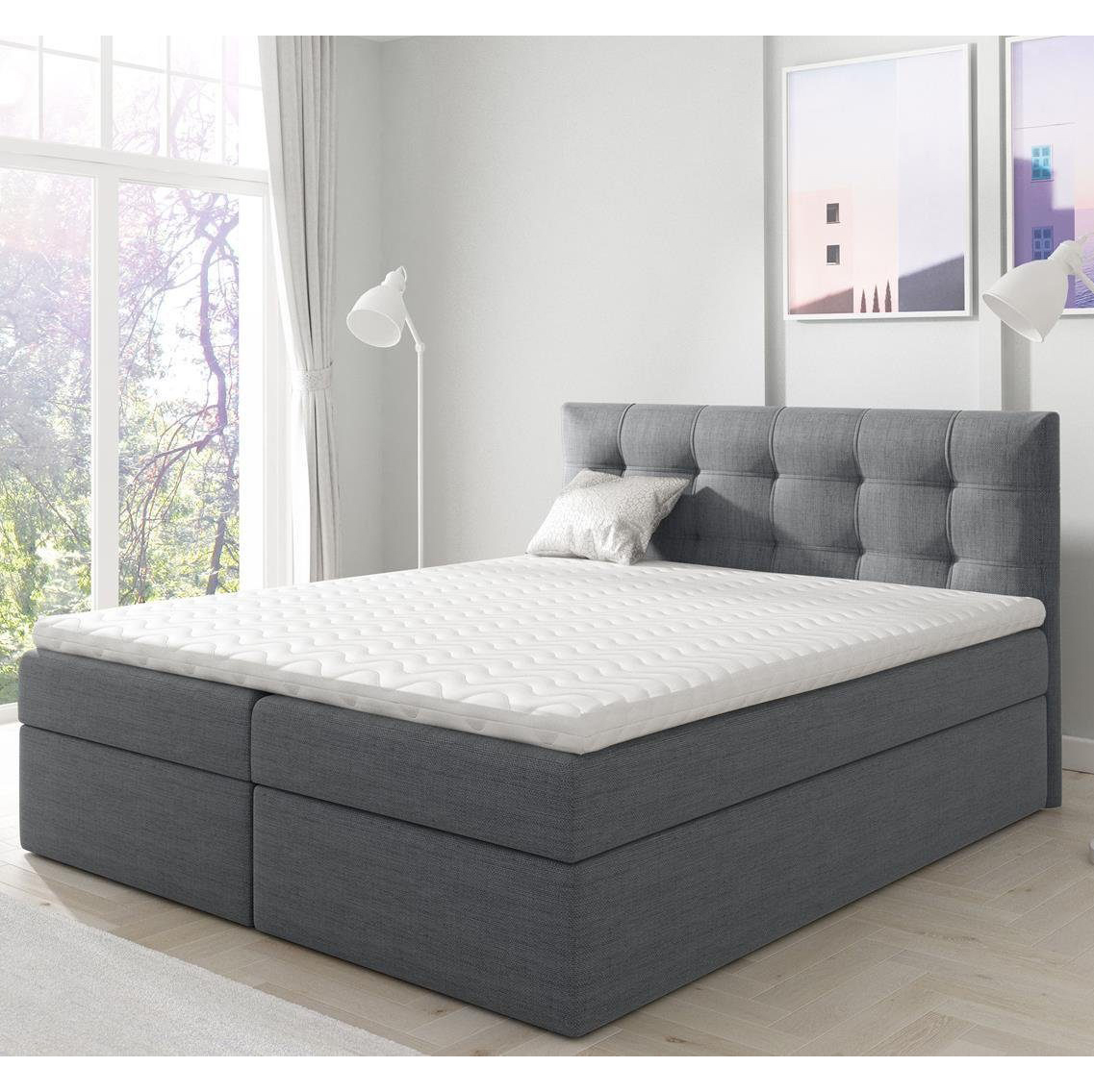 Setzen Sie auf ein strapazierfähiges Bett TOPIQ II und schaffen Sie den perfekten Schlafraum! Das vorgestellte Möbelstück ist ein Produkt von höchster Qualität, das auf der Grundlage sorgfältig ausgewählter, bewährter Komponenten hergestellt wurde, sodass es sicherlich den anspruchsvollsten Kunden zufriedenstellen wird. Das Kopfteil wurde mit einer Steppung verziert, die mit einem Saum unterstrichen ist, sodass das Ganze perfekt in die aktuellen Trends passt und dem Raum im Schlafzimmer einen luxuriösen Charakter verleiht. Durch die Verwendung von hochwertigen, optisch ansprechenden Bezugsmaterialien und dem modischen Design des Kopfteils fügt sich Bett TOPIQ II perfekt in ein modernes Arrangement ein und unterstreicht wirkungsvoll seine Einzigartigkeit.