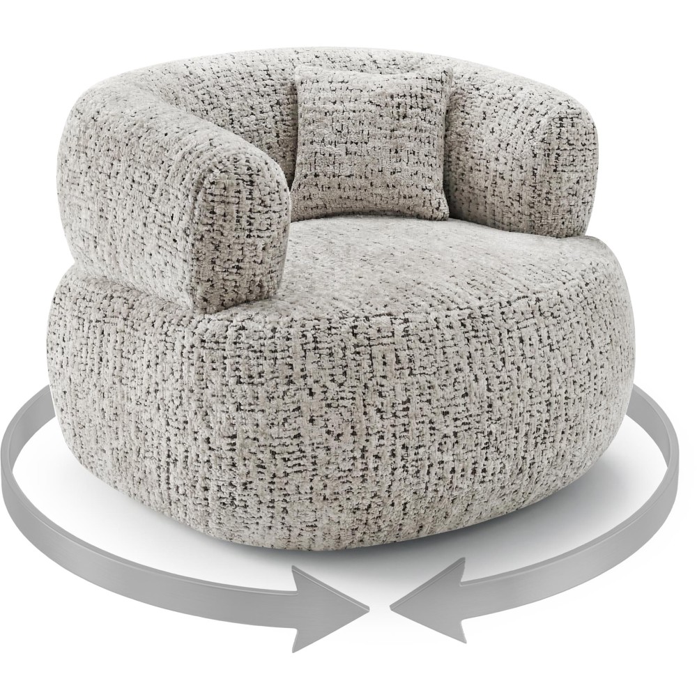 Drehsessel LAILA mit runder Form, Drehfunktion und HR-Schaumstoff. Weicher Rimba-Stoff, inkl. Dekokissen, ideal zum Entspannen.