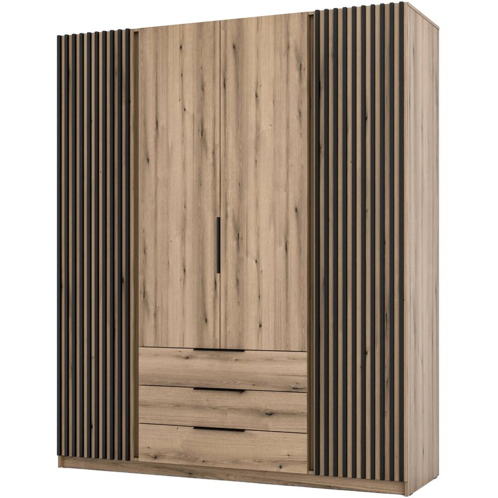 Drehtürenschrank mit Lamellen und Schubladen KAYA IV 200 cm