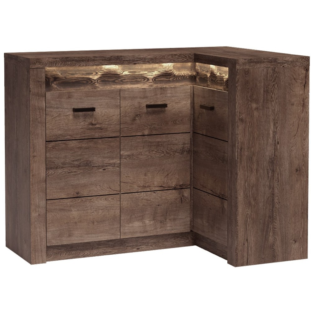 Die Eckkommode POLIS ist die ideale Lösung, um ungenutzte Raumecken stilvoll und funktional zu gestalten. Ihr durchdachtes Design bietet reichlich Stauraum hinter drei Türen, sodass Sie Geschirr, Textilien oder Accessoires ordentlich verstauen können.