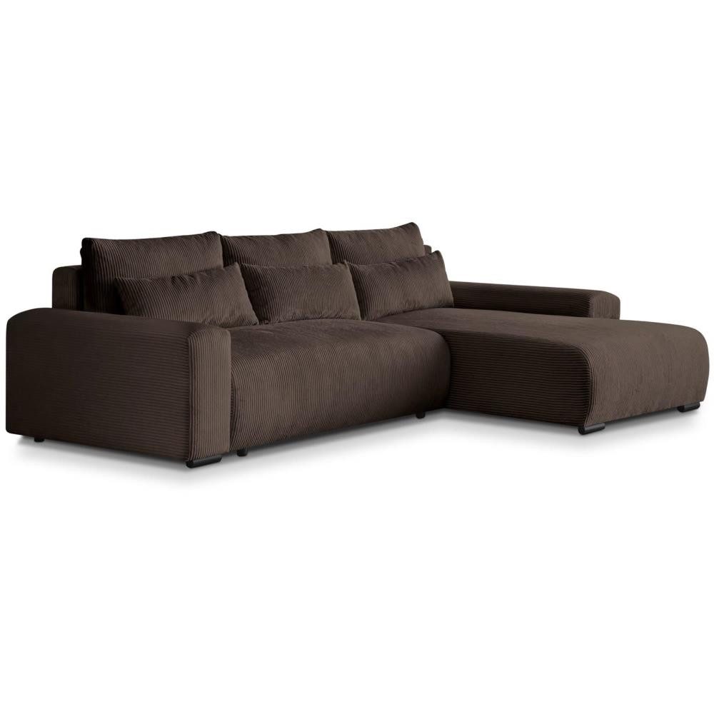 Wir laden Sie ein, ein ungewöhnliches Ecksofa Benny zu entdecken, das außergewöhnlichen Komfort und Funktionalität in Ihr Interieur bringt. Unser L-förmiges Corner Sofa Benny, gepolstert mit 3D-Streifen, ist eine Kombination aus modernem Design und praktischen Lösungen. Einer der wichtigsten Vorteile dieses Sofas ist seine Schlaffunktion mit Liegefläche von 140×218 cm. Auf einfache Weise können Sie es in ein bequemes Bett verwandeln, was es ideal macht, wenn Gäste über Nacht bleiben. Der bequeme Sitz, der auf einer Wellenfeder basiert, bietet nicht nur Komfort während des täglichen Gebrauchs, sondern auch eine hervorragende Unterstützung für Ihre Wirbelsäule. Es verfügt über einen Bettwäschebehälter, der diskret im Inneren des Möbels versteckt ist. Nicht nur Bequemlichkeit, sondern vor allem Praktikabilität – das sind die Merkmale des stilvoll Ecksofas Benny.