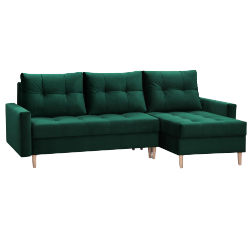 Das Polsterecke Halant ist ein Wohnzimmermöbel, das im Einklang mit zeitgenössischen Trends entworfen wurde. Es verfügt über 3 große Rückenkissen, dank derer Sie zusätzlichen Seitenhalt auf der Ottomane erhalten können. Die Liegefläche von 200×140 cm eignet sich hervorragend zum Entspannen beim Fernsehen oder für die Arbeit am Laptop in halb zurückgelehnter Position. Die hohen Beine des Ecksofas im typisch skandinavischen Charakter weisen auf seinen modernistischen Stil hin.