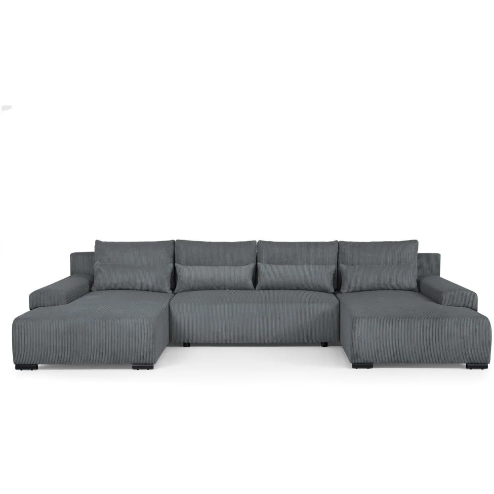 Wir laden Sie ein, ein ungewöhnliches Ecksofa Benny U zu entdecken, das außergewöhnlichen Komfort und Funktionalität in Ihr Interieur bringt. Unser U-förmiges Corner Sofa Benny, gepolstert mit 3D-Streifen, ist eine Kombination aus modernem Design und praktischen Lösungen. Einer der wichtigsten Vorteile dieses Sofas ist seine Schlaffunktion mit Liegefläche von 135×295 cm. Auf einfache Weise können Sie es in ein bequemes Bett verwandeln, was es ideal macht, wenn Gäste über Nacht bleiben. Der bequeme Sitz, der auf einer Wellenfeder basiert, bietet nicht nur Komfort während des täglichen Gebrauchs, sondern auch eine hervorragende Unterstützung für Ihre Wirbelsäule. Es verfügt über einen Bettwäschebehälter, der diskret im Inneren des Möbels versteckt ist. Nicht nur Bequemlichkeit, sondern vor allem Praktikabilität – das sind die Merkmale des stilvoll Ecksofas Benny.