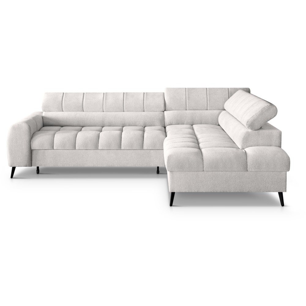 Das Ecksofa mit Schlaffunktion VINNI L steht für modernes Design, durchdachte Funktionalität und hohen Komfort – perfekt für stilbewusste Innenräume. Seine klaren Linien und die edlen schwarzen Metallfüße verleihen dem Möbelstück eine elegante Optik, während die hochwertige Verarbeitung für Langlebigkeit sorgt.