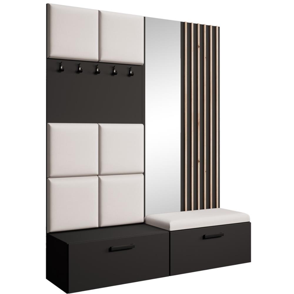 Der Garderobenschrank gepolsterten Paneelen MARGARET vereint elegantes Design mit Funktionalität. Dieser stilvolle Garderobenschrank bietet viel Stauraum. Der Garderobenschrank gepolsterten Paneelen und Spiegel schafft zudem eine optische Vergrößerung des Raumes und bringt Stil in jeden Flur.