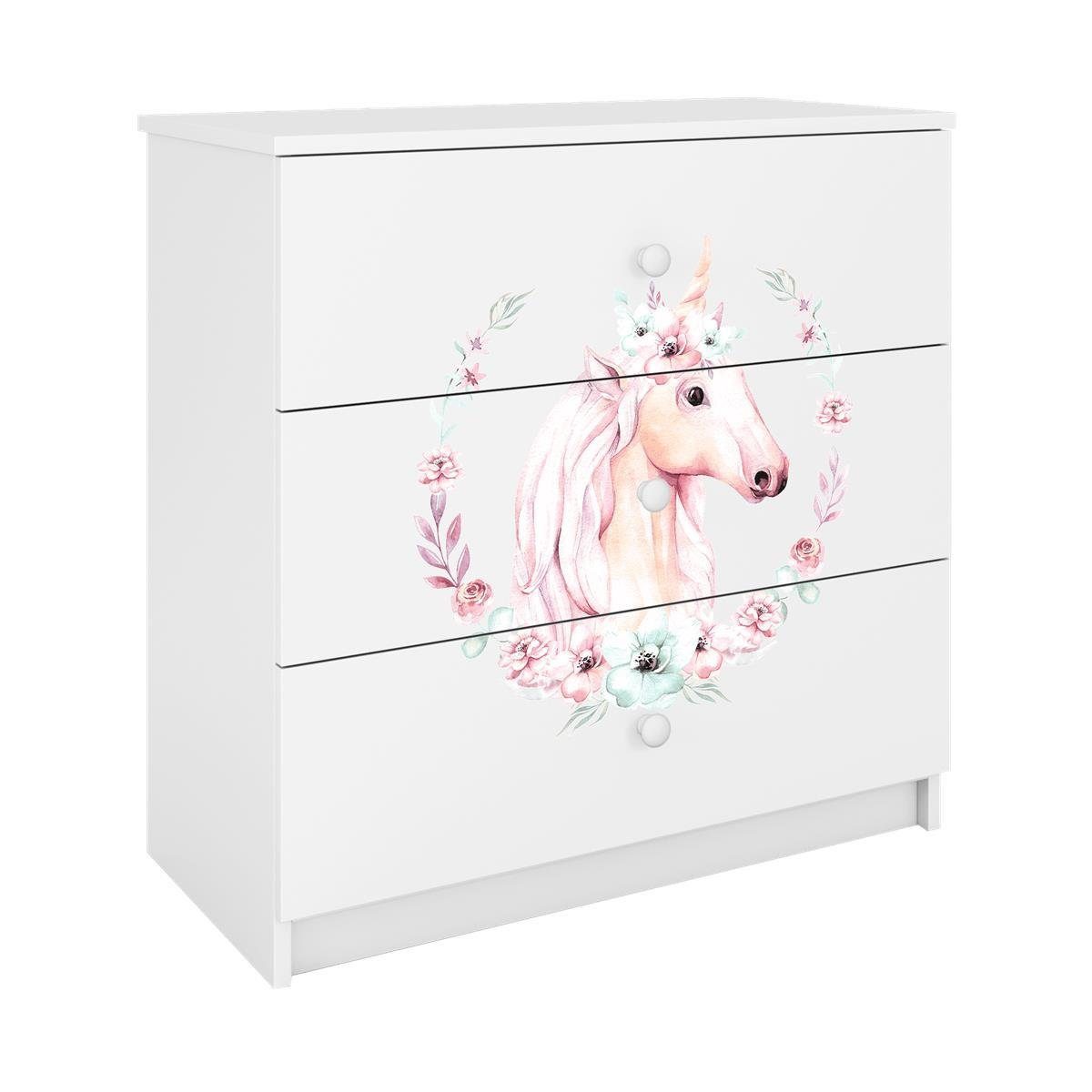 Die Kinderkommode PAUL wird zur Selbstmontage geliefert und vereint praktische Funktionalität mit einem märchenhaften Design – perfekt für kleine Fans von Prinzessinnen und Pferden!