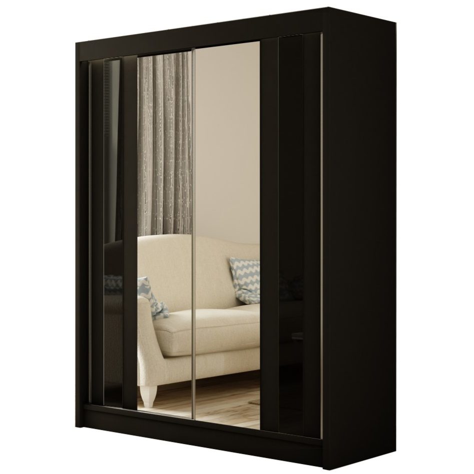 Der Schiebeschrank Coma besteht aus einer 16 mm dicken Laminatplatte. Der Kleiderschrank Coma ist mit Regalen, Kleiderstange, Glasfronten, Spiegeln ausgestattet. Das Innere des Kabinetts wurde sorgfältig entworfen, um Ihren Speicherbedarf zu erfüllen.