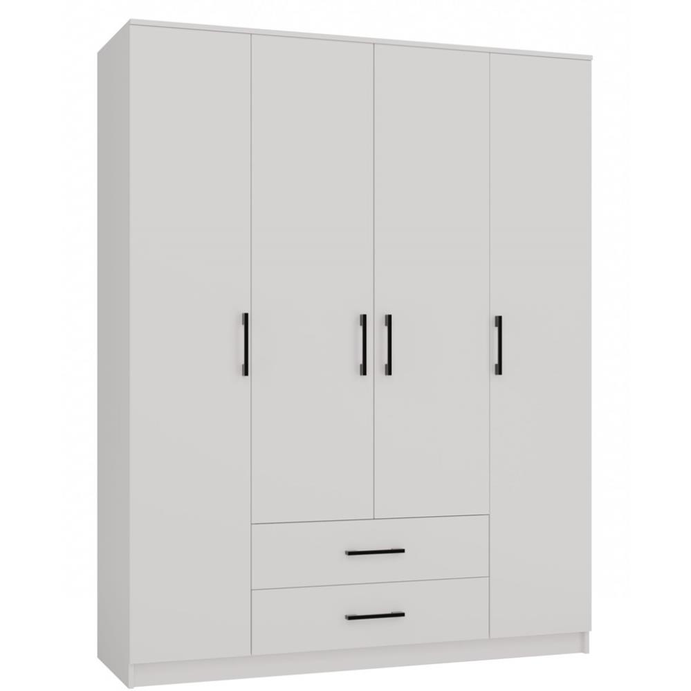 Unser viertüriger Kleiderschrank mit Flügeltüren, einer Kleiderstange und zwei Schubladen ist eine geräumige und stilvolle Lösung, die sich perfekt in jedes Interieur einfügt.