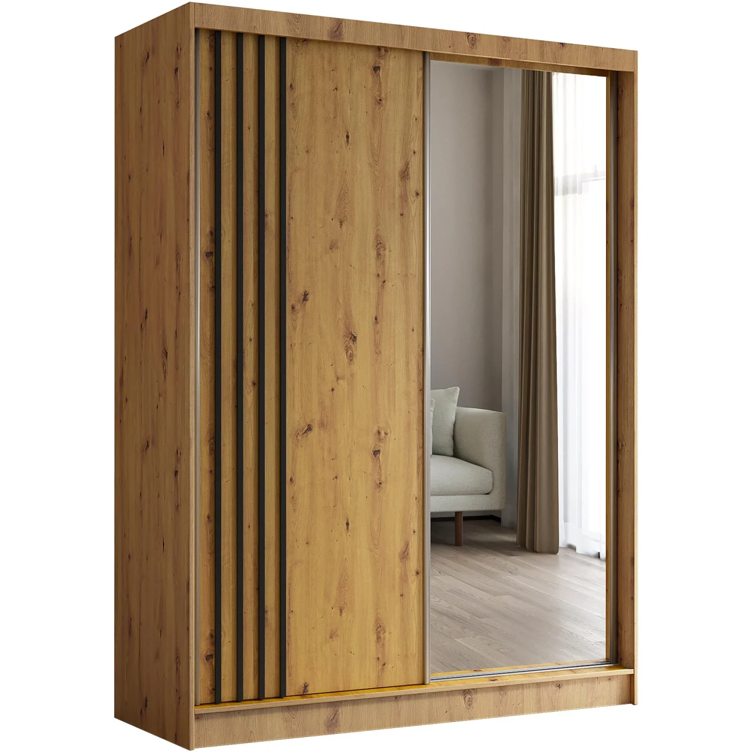 Sind Sie auf der Suche nach einem modernen Kleiderschrank, um Ihre Kleidung oder Garderobe aufzubewahren? Der Kleiderschrank Nela wird Ihre Erwartungen perfekt erfüllen! Der Kleiderschrank mit Lamellen – erhältlich in drei Farben – mit einer Breite von 120 cm, 150 cm, 160 cm, 180 cm oder 240 cm, aus 16 mm laminierter Platte und ABS-Furnier. Der Schrank Nela ist mit dem Schiebesystem “Laguna” ausgestattet, das über Aluminiumschienen. Alle Fronten sind mit einem Aluminiumgriff “OMEGA 2R” und einer Flügelbürste ausgestattet. Die beiden Schiebetüren mit Spiegel des Schranks Nela vergrößern optisch den Raum und verleihen dem Interieur Eleganz. Je nach Größe verfügt der Nela Kleiderschrank über mehrere Einlegeböden und Kleiderstangen.