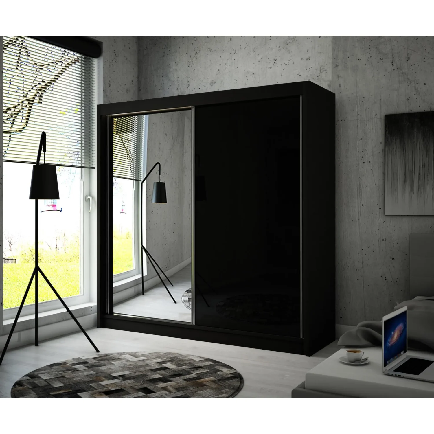 Ich präsentiere Ihnen einen modernen zweitürigen Kleiderschrank Velen, der sowohl Funktionalität als auch ein elegantes Aussehen bietet. Dieser Kleiderschrank ist in drei Größen erhältlich: 120 cm, 150 cm und 200 cm, so dass Sie ihn an Ihre individuellen Bedürfnisse und Raum anpassen können. Der Kleiderschrank Velen besteht aus hochwertigen Materialien, die Haltbarkeit und Ästhetik garantieren. An einer der Türen befindet sich ein Spiegel, der dem Raum Tiefe und optischen Raum verleiht. Die zweite Tür des Schranks besteht aus Möbelglas, das dem Inneren des Schranks eine ungewöhnliche Eleganz verleiht. Das Innere des Schrankes wurde sorgfältig entworfen, um eine optimale Raumnutzung zu gewährleisten. Hier finden Sie eine Reihe von Regalen und Kleiderstangen.