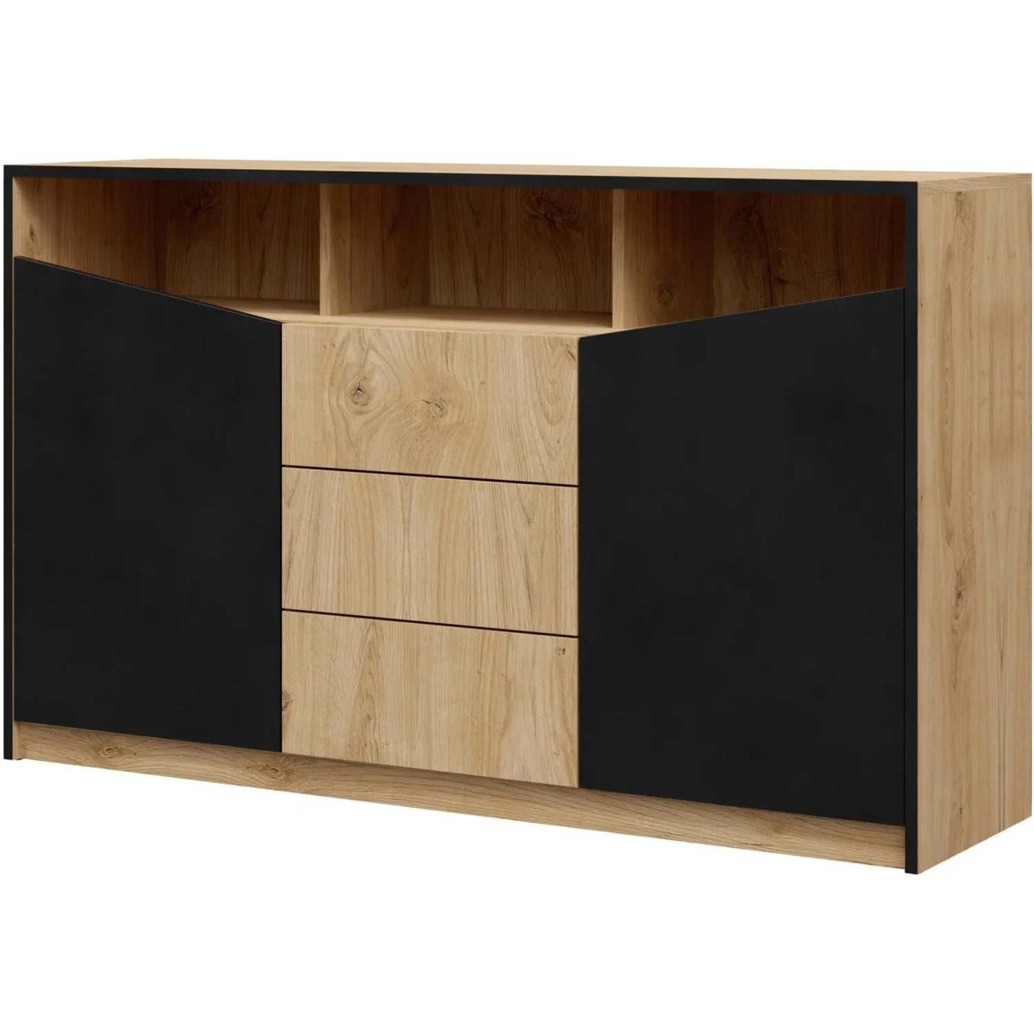- Universelle Farbe: Die schwarzen Schrankfronten zusammen mit der gealterten Eiche verleihen der Kommode einen einzigartigen Charakter, der sich perfekt in verschiedene Einrichtungsstile einfügt. Ganz gleich, ob Sie modernes, minimalistisches oder klassisches Design bevorzugen, diese Kommode ist ein echter Hingucker.