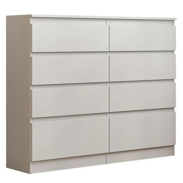 Eine perfekte Wahl für das Wohnzimmer wird die Kommode in der Farbe weiß aus der Serie Aura sein, das Material der Herstellung ist laminierte Platte. Die Kommode ist mit Schubladen ausgestattet, dank derer sie einen einfachen Zugang zum Inneren hat. Die Kommode wird auch die Einrichtung eines Wohnzimmers oder einer Diele ergänzen, indem sie einen bequemen Platz zur Aufbewahrung von kleineren und größeren Gegenständen bietet.