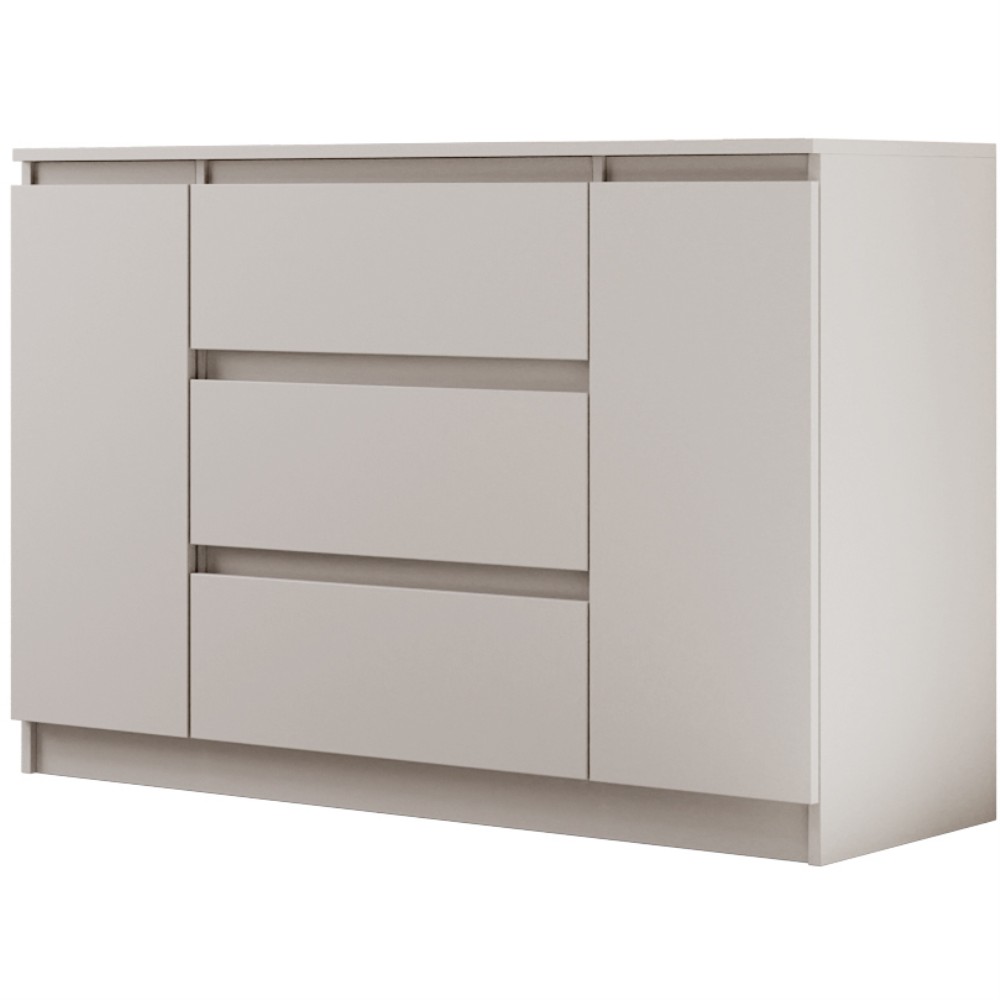 Die Kommode LINDA mit 3 Schubladen und 2 Türen vereint stilvolles Design mit praktischem Stauraum und ist eine ideale Ergänzung für Schlafzimmer.
