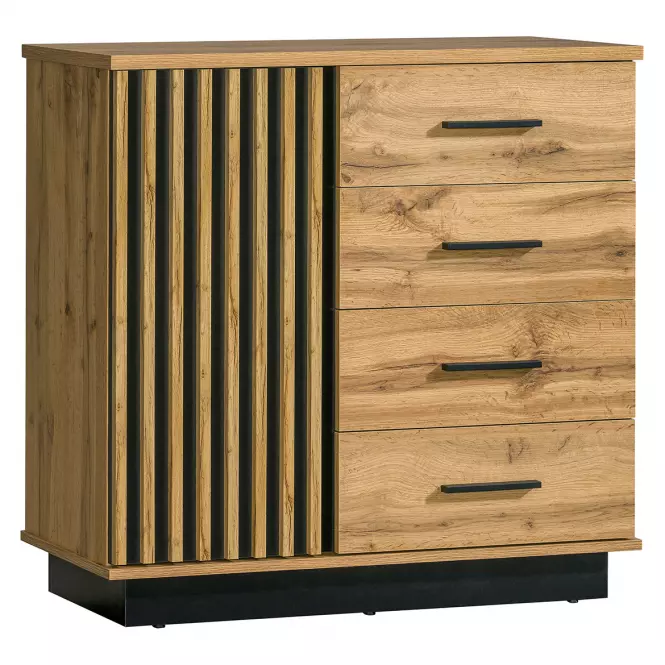 Die Kommode Lamelo mit vier Schubladen überzeugt durch modernes Design, hohe Funktionalität und eine langlebige Verarbeitung. Ihre einzigartige Farbgestaltung macht sie zu einem stilvollen Blickfang, der sich harmonisch in verschiedene Einrichtungsstile einfügt.