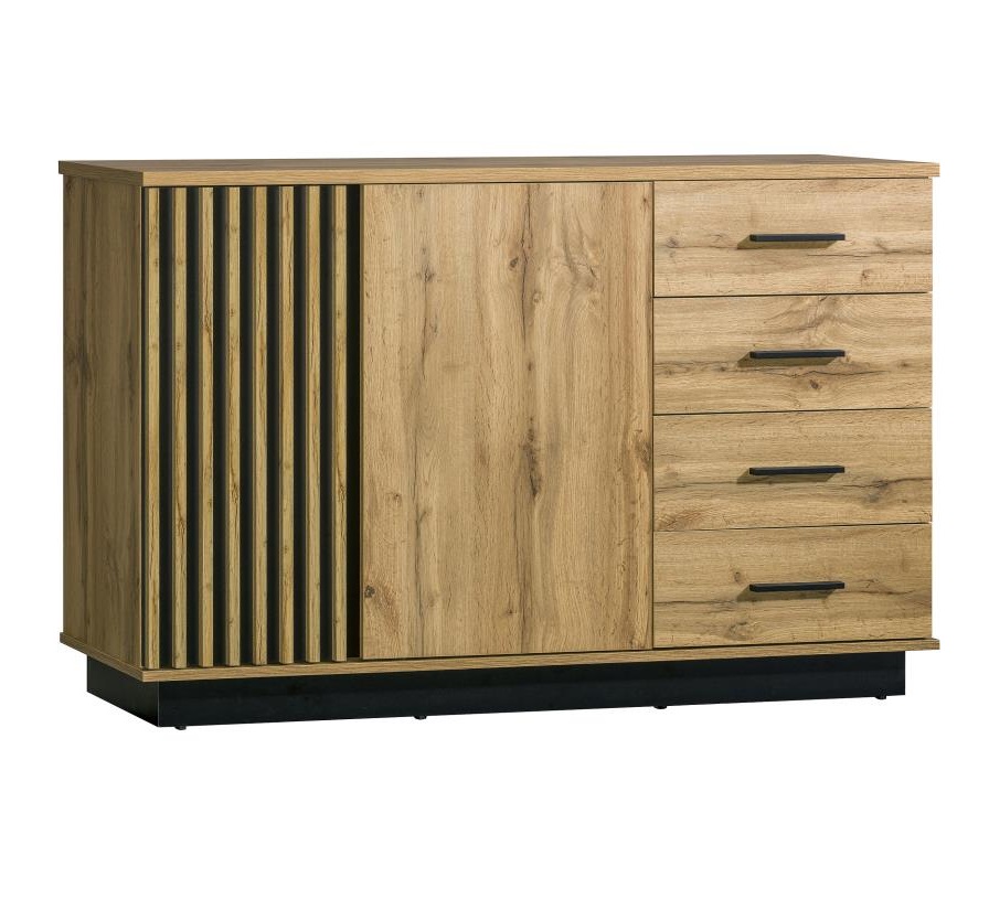 Die Kommode Lamelo mit vier Schubladen überzeugt durch modernes Design, hohe Funktionalität und eine langlebige Verarbeitung.