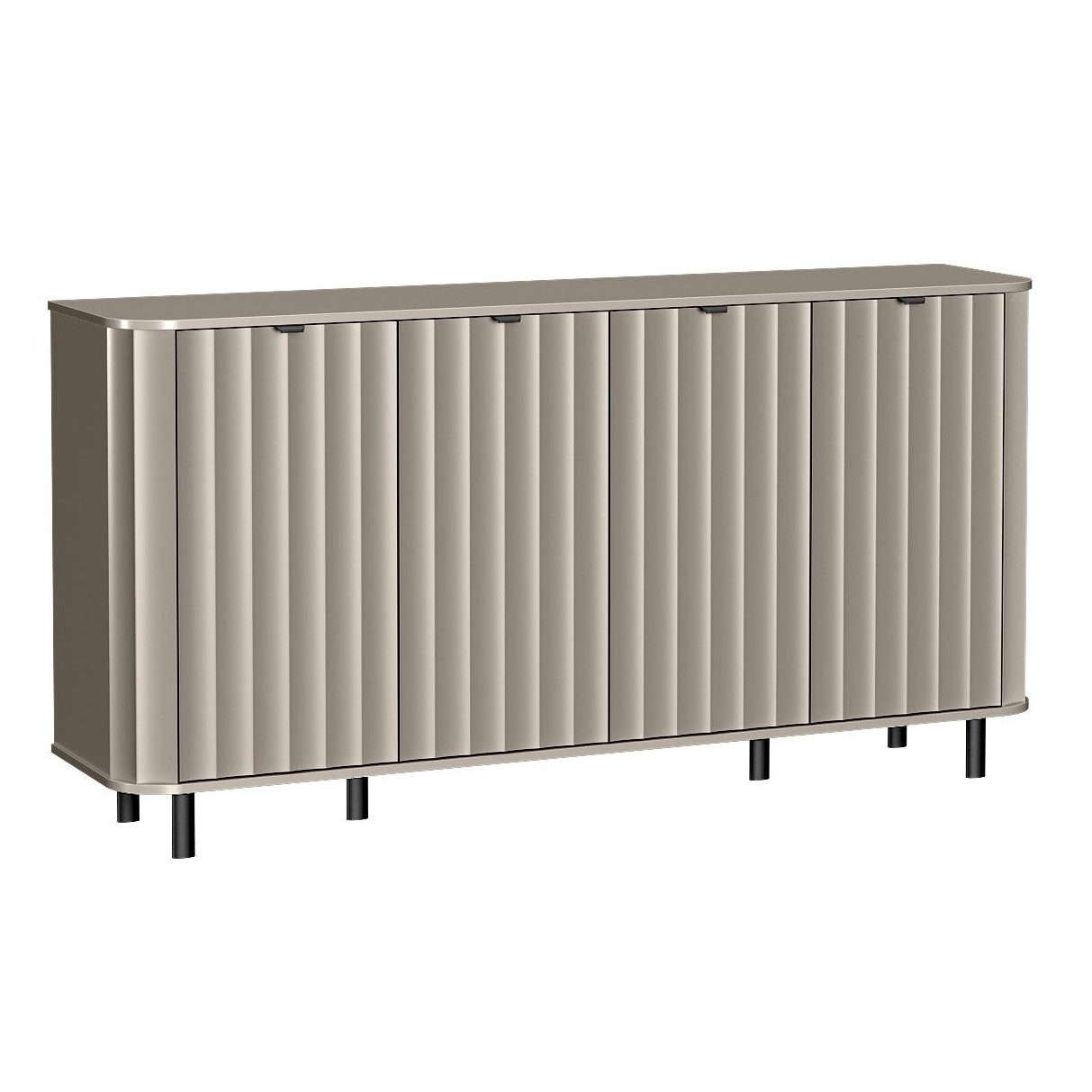 • Vertikale Fräsung in den MDF-Fronten verleiht dem Möbelstück ein modernes,