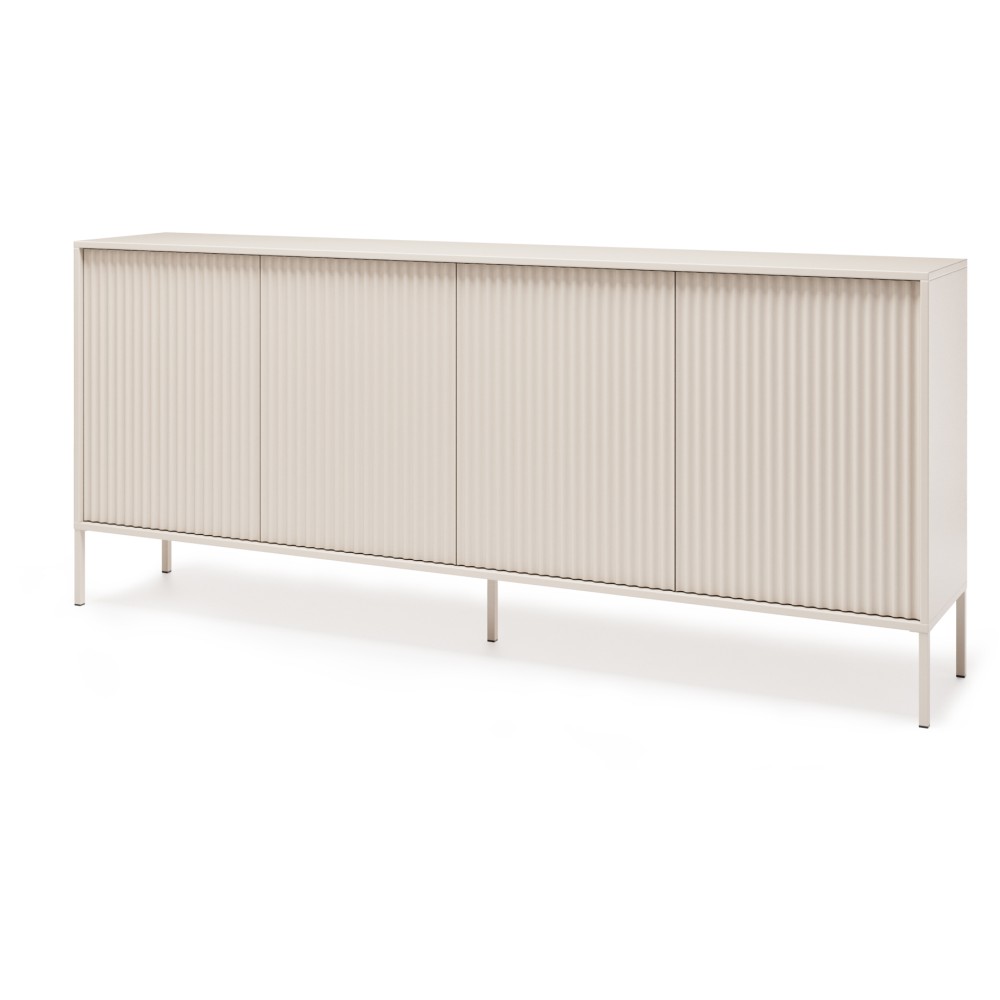 Kommode mit 4 Türen und geriffelten Fronten NOTO ist ein elegantes Möbelstück, das zeitloses Design mit hoher Funktionalität verbindet.