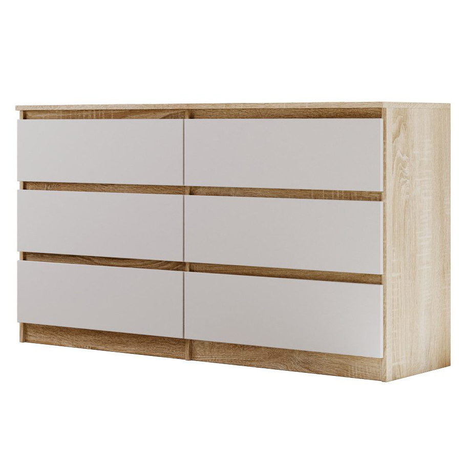 Kommode mit sechs Schubladen LINDA Eiche sonoma + weiß 140 cm