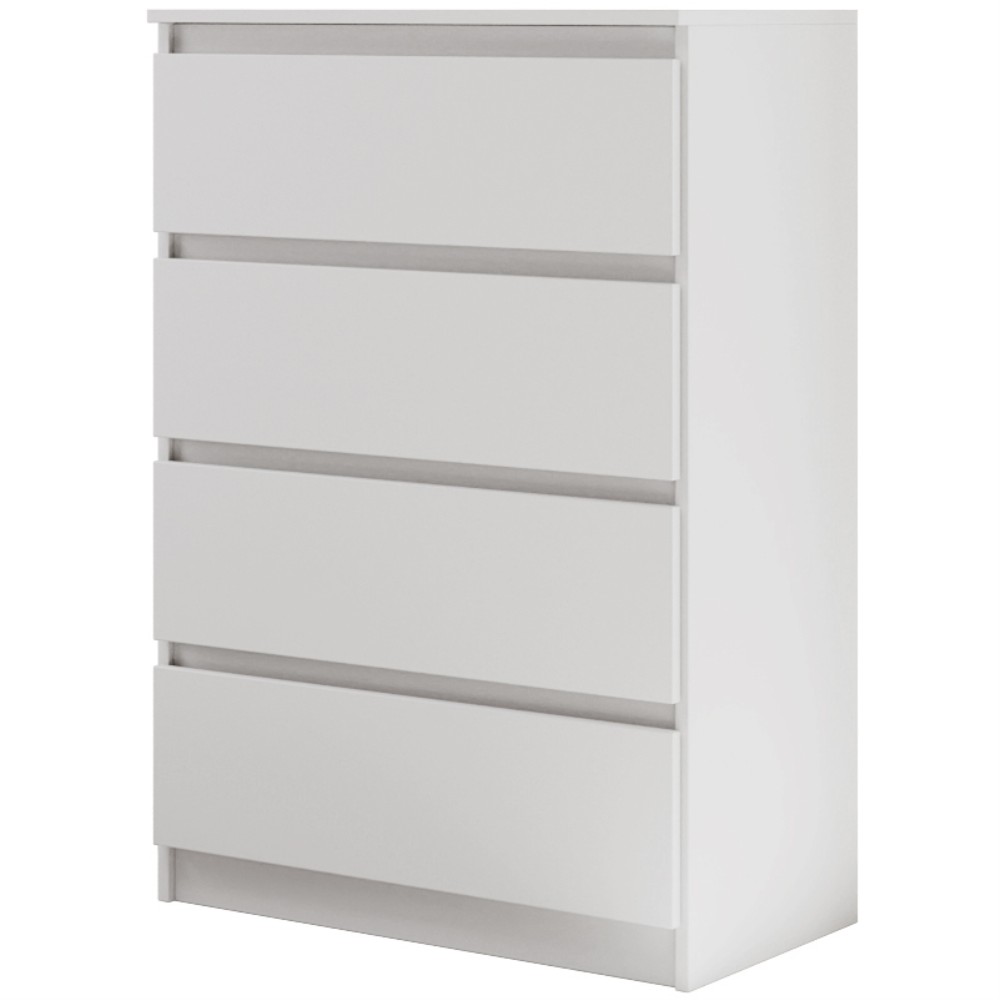 Mit ihrem geräumigen und doch kompakten Design ist die Kommode LINDA mit vier Schubladen die ideale Lösung für alle, die eine Kombination aus Stauraum und modernem Stil suchen.