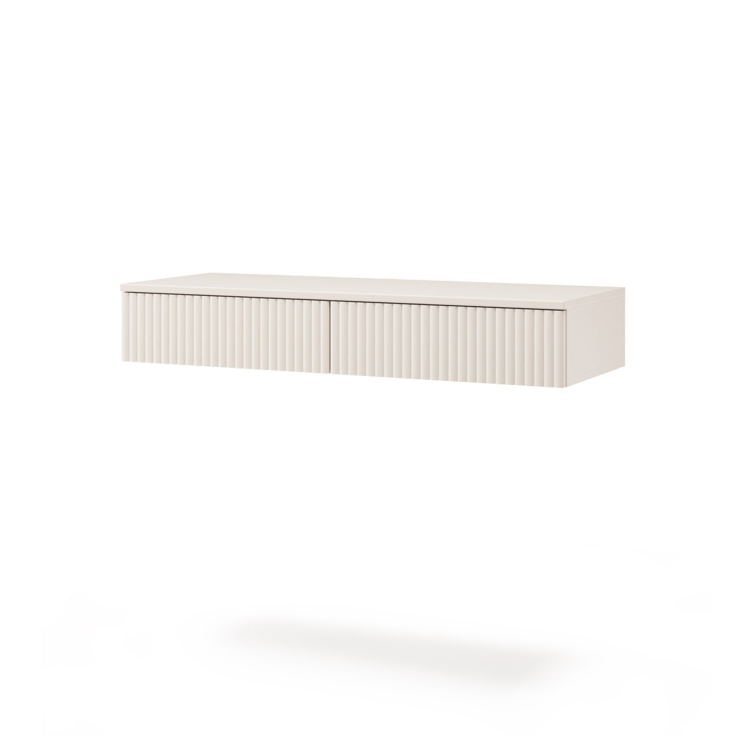 Der hängende Konsolentisch SOFT vereint funktionale Aufbewahrung mit elegantem Design und ist die perfekte Lösung für Flur, Wohnzimmer oder Schlafzimmer. Die markanten geriffelten Fronten in der angesagten Farbe Kaschmir verleihen dem Möbelstück einen modernen, stilvollen Charakter.