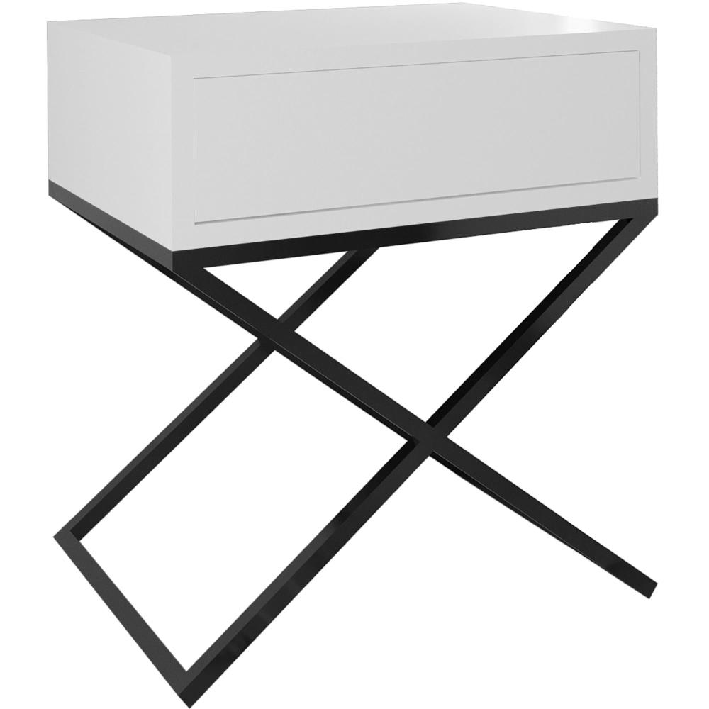 Nachttisch MAX weiß mit schwarz Metallbeinen