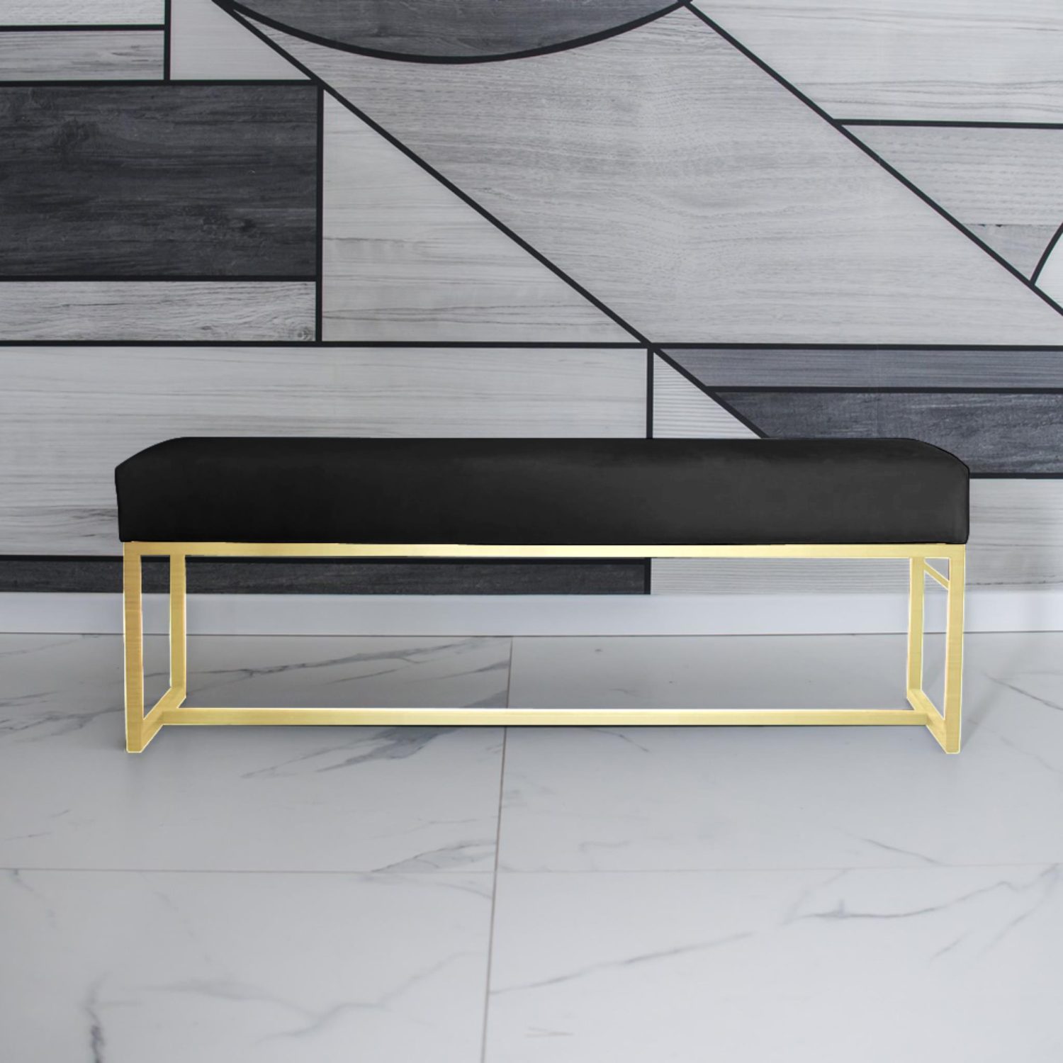 Das stabile Metallgestell in goldener Farbe unterstreicht das edle Erscheinungsbild und sorgt gleichzeitig für eine robuste Konstruktion. Der Bezug in Kronos 7 (Schwarz) verleiht der Bank eine zeitlose Eleganz und macht sie zu einem stilvollen Blickfang in Ihrem Zuhause.