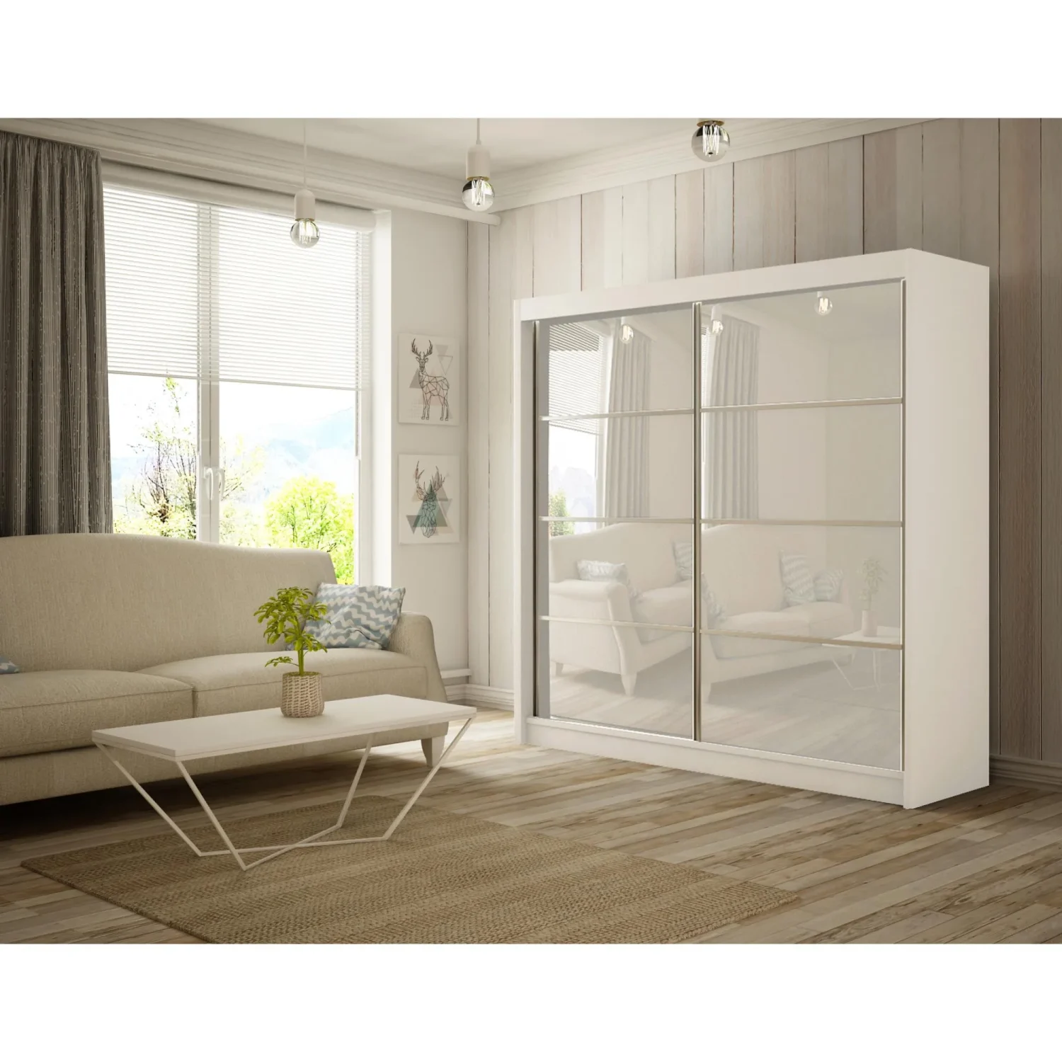 Schiebetürenschrank mit Glastüren POL III 200 cm Weiß
