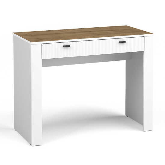 - Typ und Funktion – Moderner Schminktisch Mossa mit einer breiten Arbeitsfläche und einer Schublade.