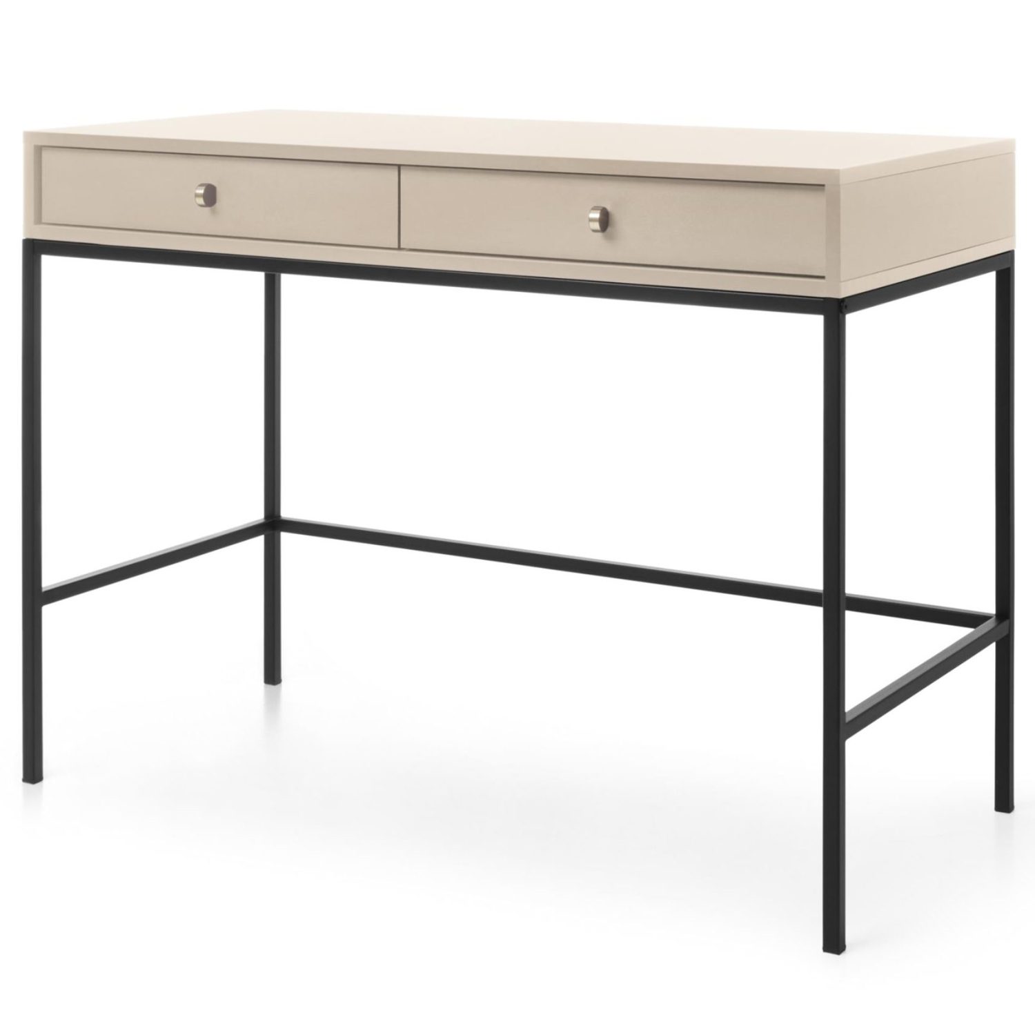 Der Schreibtisch aus der Kollektion Monica ist ein stilvolles Möbelstück, das in jedes moderne Schlafzimmer passt. Die geräumige Ablagefläche bietet Platz für alles, was Sie brauchen, und zwei funktionale Schubladen ermöglichen es Ihnen, Ihre Kosmetika und Accessoires zu verstauen. Der Schreibtisch eignet sich auch gut als Schminktisch oder als Konsole im Korridor. Das optisch leichte Design wird den Raum, in dem er steht, nicht erdrücken, und sein schlanker Metallsockel trägt zum Loft-Charakter bei.