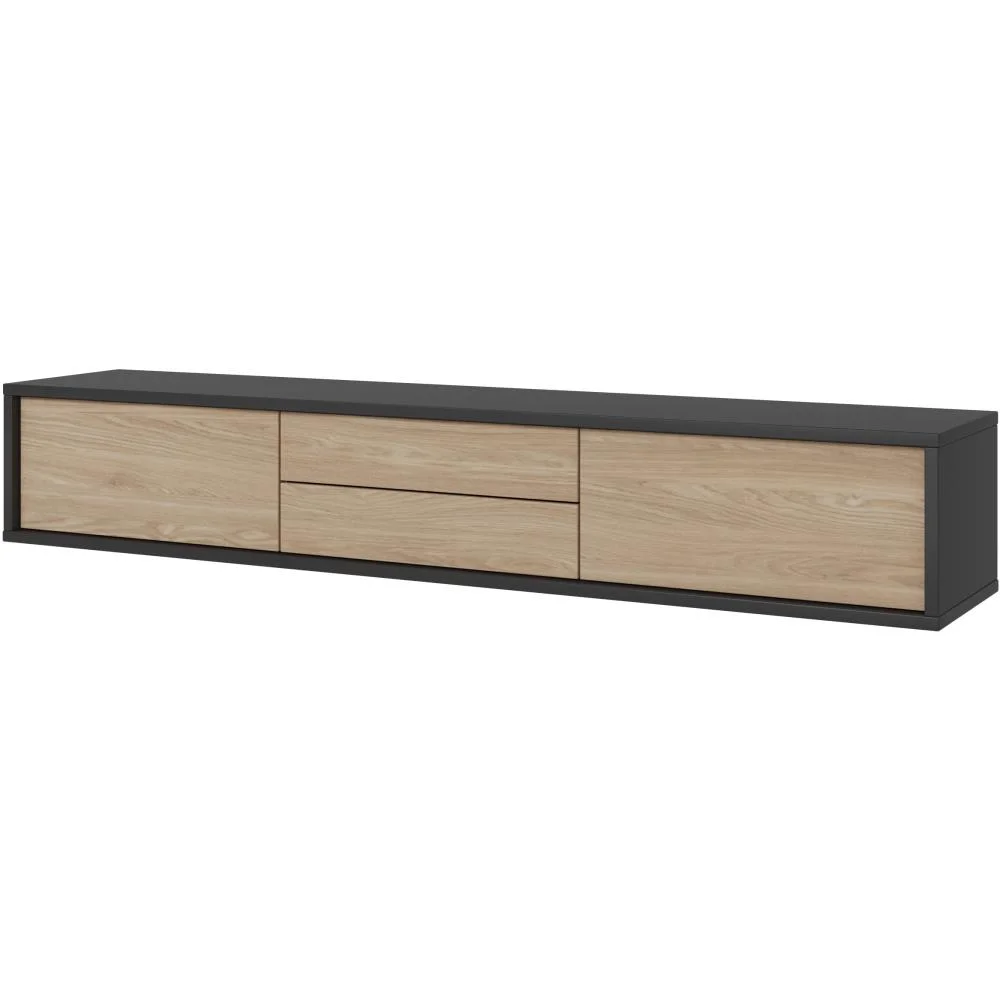 Der TV-Schrank FRIDA mit zwei Türen ist die perfekte Kombination aus Funktionalität, Langlebigkeit und modernem Design. Mit seiner zweitürigen Konstruktion und den zwei geräumigen Schubladen bietet er ausreichend Platz, um elektronische Geräte, Kabel oder andere Gegenstände ordentlich zu verstauen.
