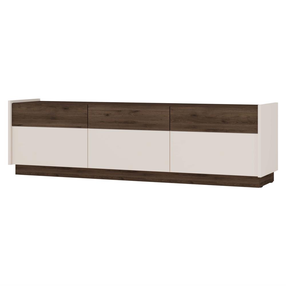 Der TV-Schrank aus der Möbelkollektion Kobe vereint stilvolle Eleganz mit praktischer Funktionalität. Die kontrastreiche Kombination von Okapi-Nussbaum und Sandbeige schafft eine warme, gemütliche Atmosphäre und passt perfekt zu modernen, minimalistischen oder japanischen Einrichtungsstilen. Mit seinen drei geräumigen Schränken bietet dieses Möbelstück nicht nur ausreichend Stauraum für Ihre Elektronik und Zubehör, sondern verleiht Ihrem Wohnraum auch eine harmonische und aufgeräumte Optik.
