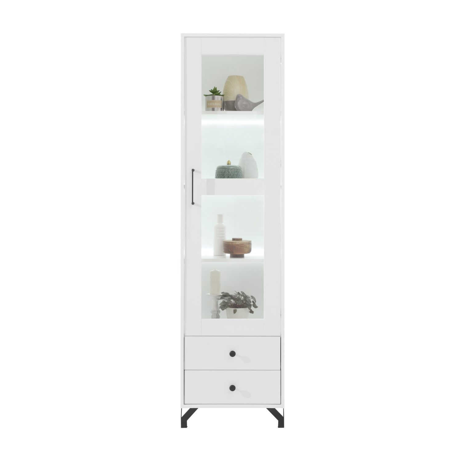 Die Vitrine BERGO mit 1 Tür und 2 Schubladen ist die perfekte Lösung für alle, die auf der Suche nach einem funktionalen und stilvollen Möbelstück sind.