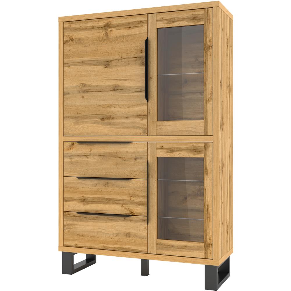 - Eleganz und Funktionalität: Die 3-Schubladen-Vitrine mit Glasfronten ist in der zeitlosen Farbe Eiche Wotan gehalten, die sich perfekt in verschiedene Einrichtungsstile einfügt – von klassisch bis modern. Die warme Farbe des Holzes verleiht dem Interieur Gemütlichkeit, während die Glasfronten für Leichtigkeit und subtile Eleganz sorgen. Eine ausgezeichnete Wahl für alle, die ästhetische und funktionale Lösungen zu schätzen wissen.
