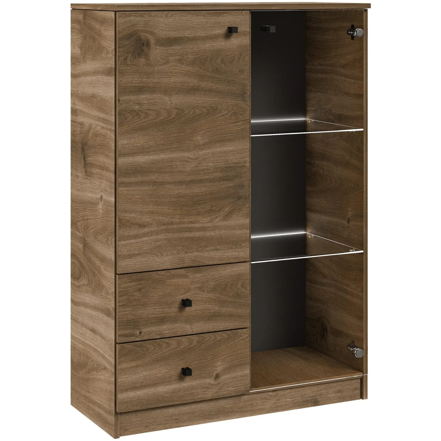 Die Vitrine aus dem System “W” in Brandy Castello ist eine Kombination aus Eleganz und Zweckmäßigkeit. Die originelle braune Farbgebung verleiht Ihrer Einrichtung einen modernen Look, und die schwarzen Griffe sind der perfekte Kontrast, um einen dezenten Akzent zu setzen.