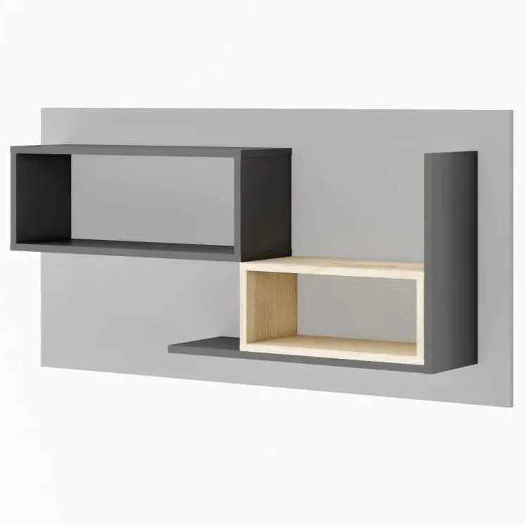 Das originelle, asymmetrische Hängeregal bietet zusätzlichen Stauraum für Bücher oder Dekorationen und ermöglicht eine ergonomische Nutzung der Wände. Das Möbelstück ist aus strapazierfähiger laminierter Platte gefertigt und mit einer haltbaren ABS-Kante versehen.