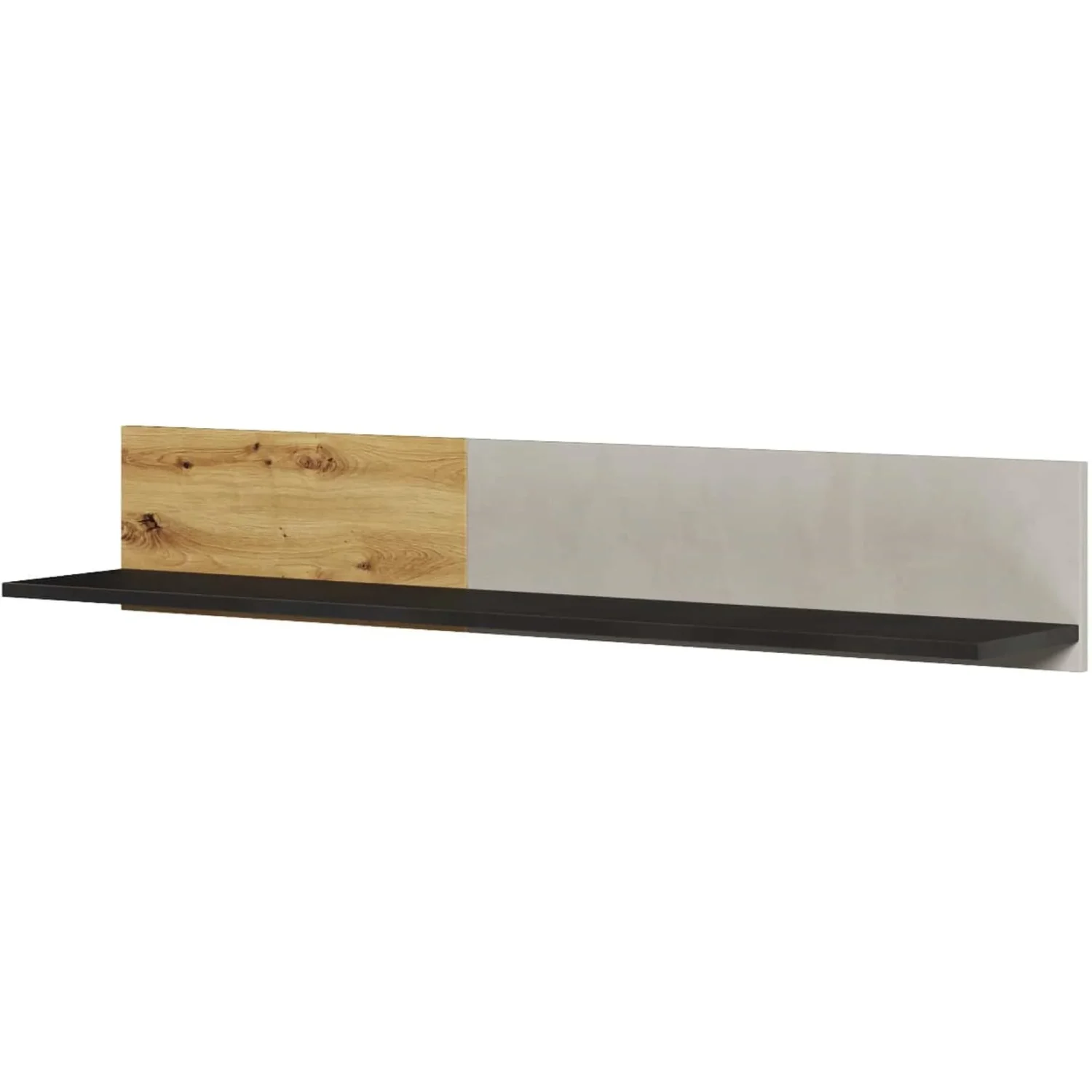 Ein praktisches Hängeregal für Bücher und/oder Dekorationen. Dank ihm werden Sie die Wände als Stauraum nutzen. Es sieht toll aus, wenn es über anderen Möbeln aus der QUBIC-Kollektion aufgehängt wird – einem Schreibtisch, Bett oder einer Kommode. Das Regal wurde in drei Farben hergestellt – hellgrau und mit Holz- und Rohstahldekoren, was ihm einen interessanten, modernen Charakter verleiht. Das Möbelstück ist aus strapazierfähiger laminierter Platte gefertigt und mit einer haltbaren ABS-Kantenumrandung versehen.
